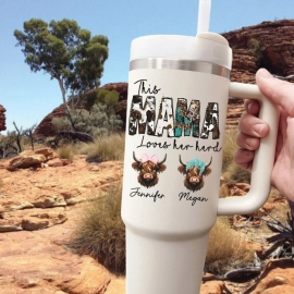 This Mama Loves Herd Personalized Tumbler HG 40oz, Custom Cowhide Mama Cup, Cute Highland Cow Western Mom Tumbler HG, Mother’s Day Gift for Mama