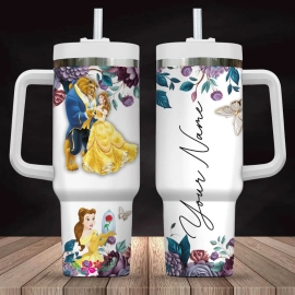 Custom Name Beauty And The Beast Flower 40Oz Tumbler With Handle And Straw Lid Personalized 30oz or 40 Oz HG