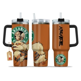 Arcanine Coffee Pokemon Anime Custom 30oz or 40oz Quencher Stainless Steel Tumbler With Handle, Best Gift Idea NVA, Best Gift Idea NVA