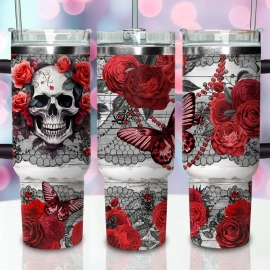 Rose Gothic Skull 30oz or 40oz Tumbler Butterfly Tumbler Quencher Tumbler Gift For Her Him Birthday Gift LN Floral Tumbler With Handle