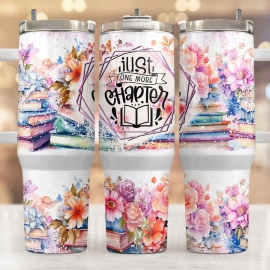 Book Tumbler Floral One More Chapter 30oz or 40oz Tumbler Quencher Tumbler Gift For Her Him Birthday Gift LN