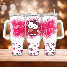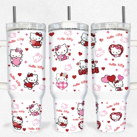 Valentine Hello Kitty Sanrio Cartoon Custom Quencher 30oz or 40oz Stainless Steel Tumbler With Handle HG