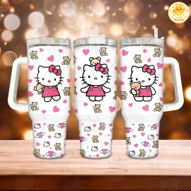 Valentine Cartoon Hello Kitty Teddy 30oz or 40oz Tumbler, Gift Valentine Tumbler, Valentine Movie 40oz Quencher Tumbler Fan Gift HFN
