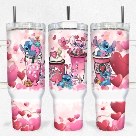 Valentine Stitch Disney Cartoon Custom Quencher 30oz or 40oz Stainless Steel Tumbler With Handle HG