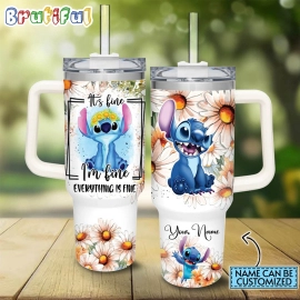 Stitch Tumbler, Custom Name Everything Is Fine Stitch Daisy Flower Pattern 40oz Tumbler HG