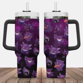 Gengar Coffee Pokemon Anime Custom 30oz or 40oz Quencher Stainless Steel Tumbler With Handle, Best Gift Idea NVA