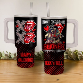 The Rolling Stones Happy Valentine Music Custom Stanley Quencher 40oz Stainless Steel Tumbler HG With Handle