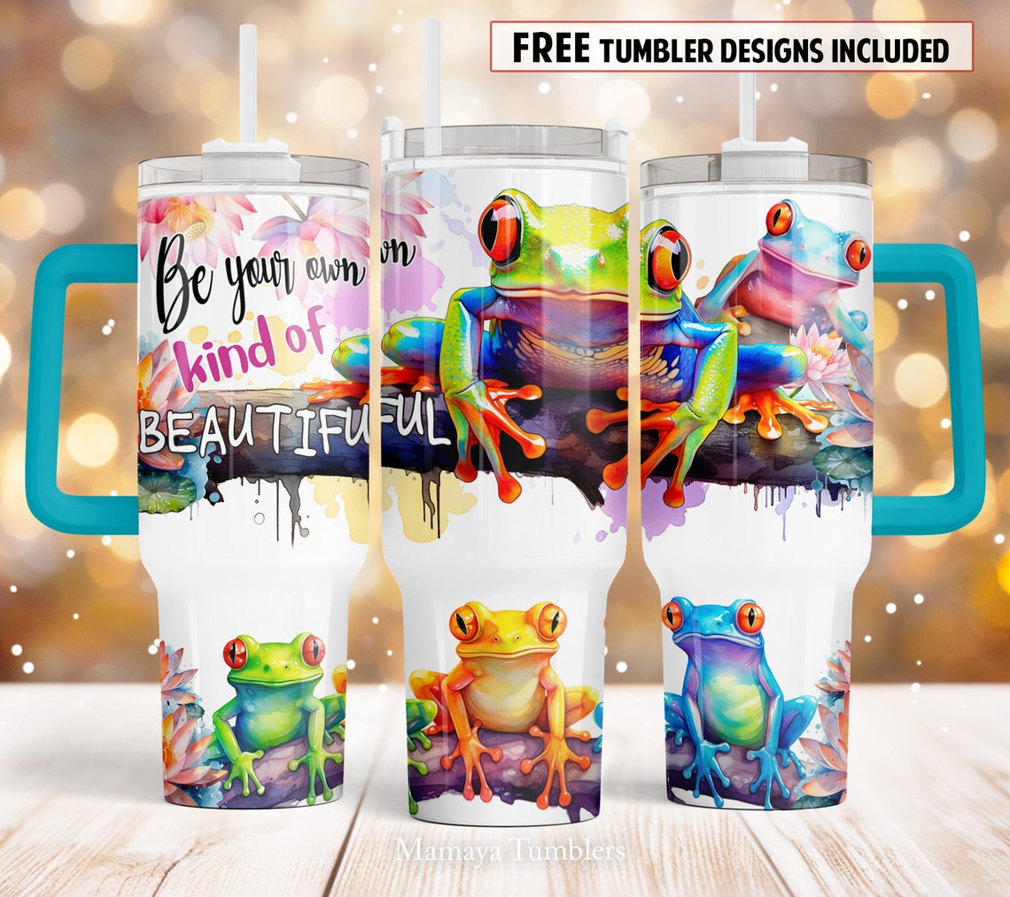 Be your own kind of beautiful 30oz or 40oz Quencher Tumbler Gift For Her Him Birthday Gift LN Funny frogs flower Motivation