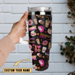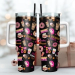 Dunkin Donuts Iced Coffee Custom Quencher 30oz or 40oz Stainless Steel Tumbler With Handle, Best gifts for Friend Family NVA