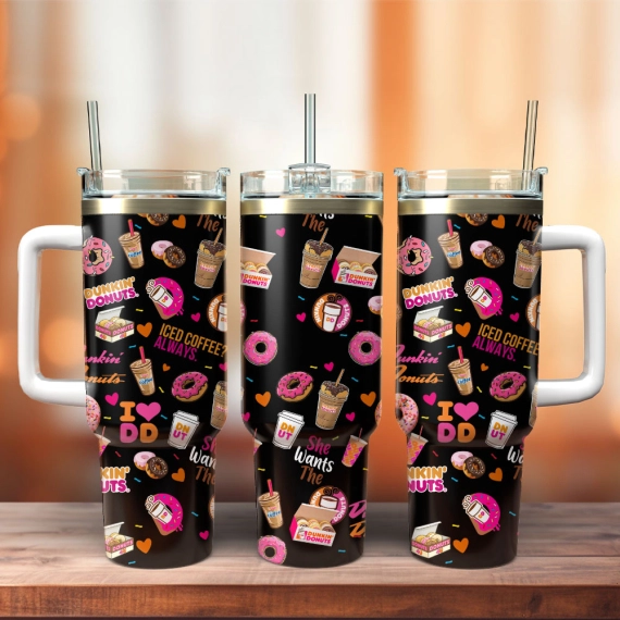 Dunkin Donuts Iced Coffee Custom Quencher 30oz or 40oz Stainless Steel Tumbler With Handle, Best gifts for Friend Family NVA