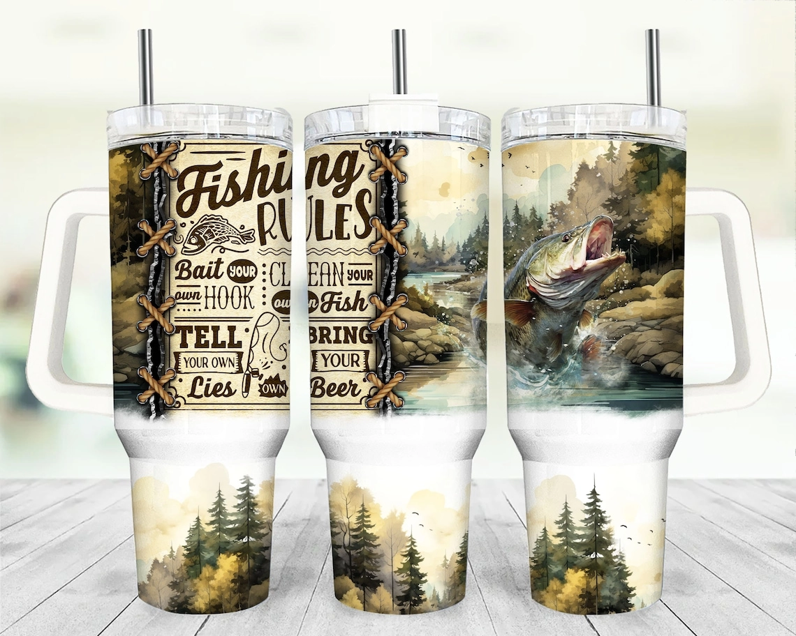 Fishing rules 30oz or 40oz Quencher Tumbler Gift For Her Him Birthday Gift LN Lake life Waterslide