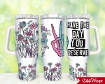 Have The Day You Deserve 30oz or 40oz Tumbler with Handle, Birthday Anniversary Tumbler Gift HFN Skeleton Hand Floral Tumbler, Floral Tumbler