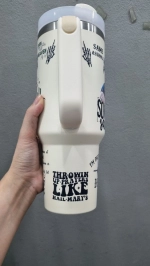 We use water-soluble and eco-friendly ink, which is then cured through a heat treatment process. This ensures the design’s color-fastness and lasting durability. Tumbler’s colors will remain vibrant and intact for years to come!