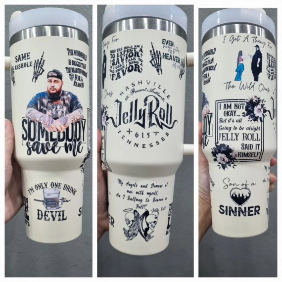 Jelly Roll The Beautifully Broken Tour 40oz 30oz or 40oz Stainless Steel Tumbler With Handle HG