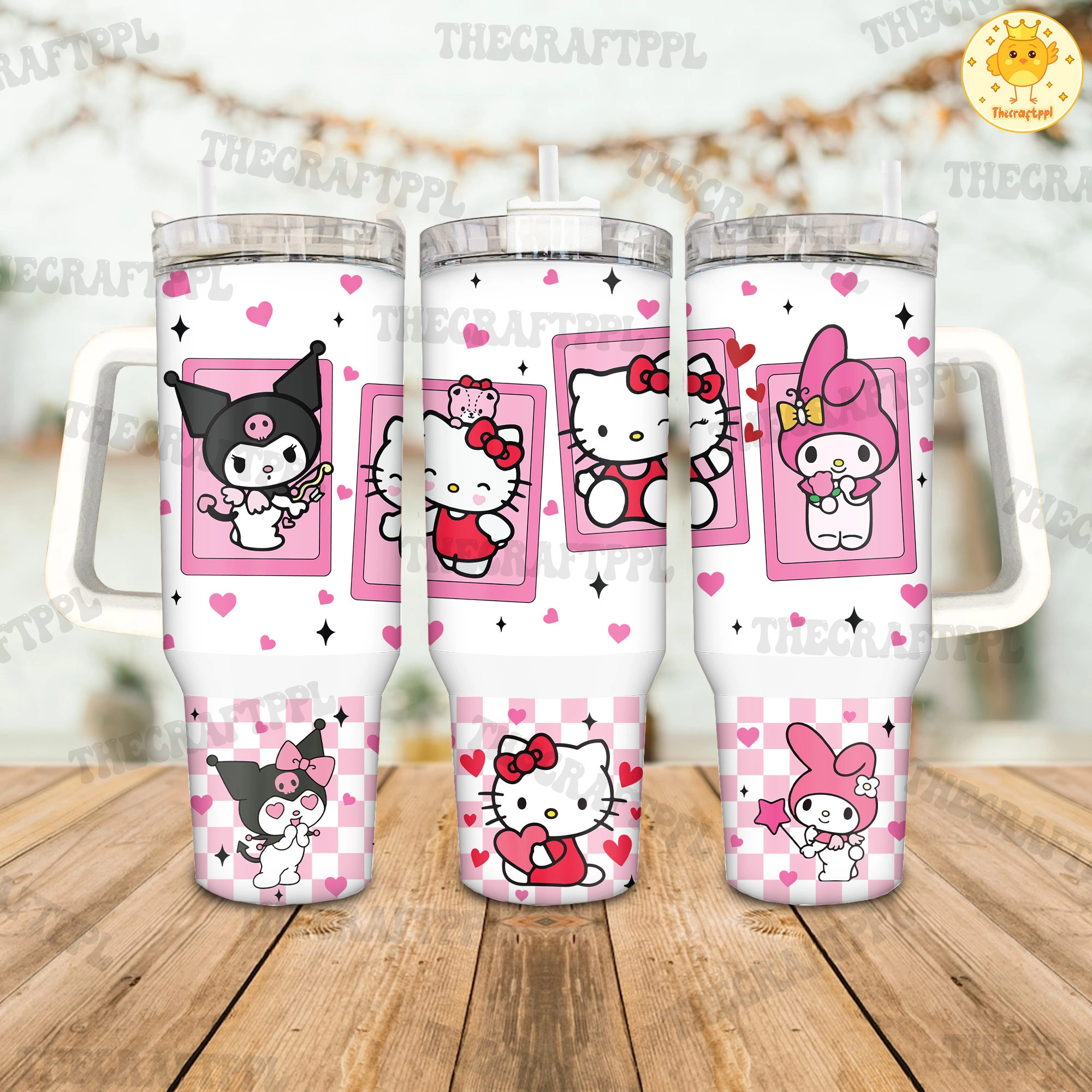 Kuromi Kitty Melody Hello Kitty Friends 30oz or 40oz Tumbler with Handle, Hello Kitty Fan Gift, Birthday Anniversary Tumbler Gift HFN