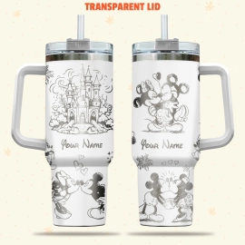 Mickey And Minnie Mouse Disney Cartoon 30oz or 40oz Quencher Stainless Steel Tumbler With Handle, Best Gift Idea NVA