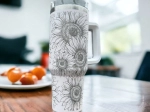 Sunflower Engraved 30oz or 40oz Tumbler with Handle, Birthday Anniversary Tumbler Gift HFN