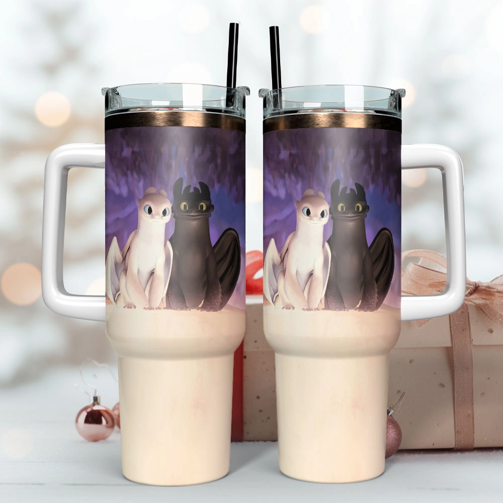 Toothless How to Train Your Dragon Custom Quencher 30oz or 40oz Stainless Steel Tumbler With Handle, Best gifts for Friend Family NVA
