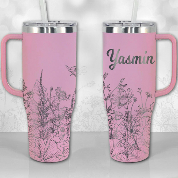 Wildflowers with Name or Monogram Personalized 30oz or 40oz Tumbler with Handle, Best Gifts NVA