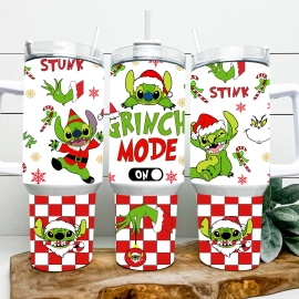Christmas Stitch Grinch Mode Disney Cartoon Custom Stanley Quencher 30oz or 40oz Stainless Steel Tumbler With Handle HG
