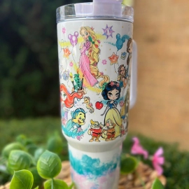 Disney Princesses Cartoon Custom Stanley Quencher 30oz or 40oz Stainless Steel Tumbler With Handle HG